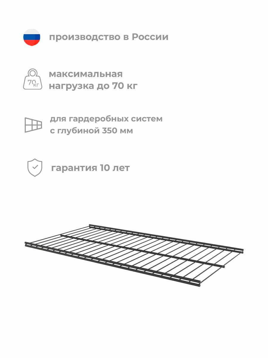 Сетчатые полки удобны в использовании, так как позволяют воздуху свободно циркулировать, предотвращая появление плесени и грибка. Они также обеспечивают хороший обзор содержимого, что облегчает поиск нужных вещей. Производство этих полок осуществляется в России, что гарантирует высокое качество продукции и соответствие стандартам качества.