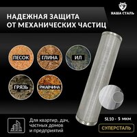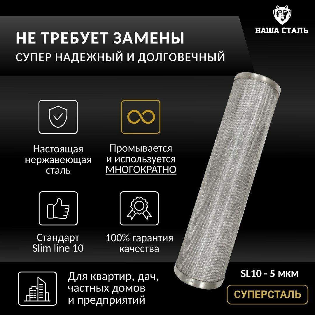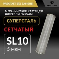 Промывной сетчатый картридж «суперсталь» стандарта SL10 (5 микрон) из нержавеющей стали для фильтра грубой механической очистки воды аналогичного стандарта Slim Line10