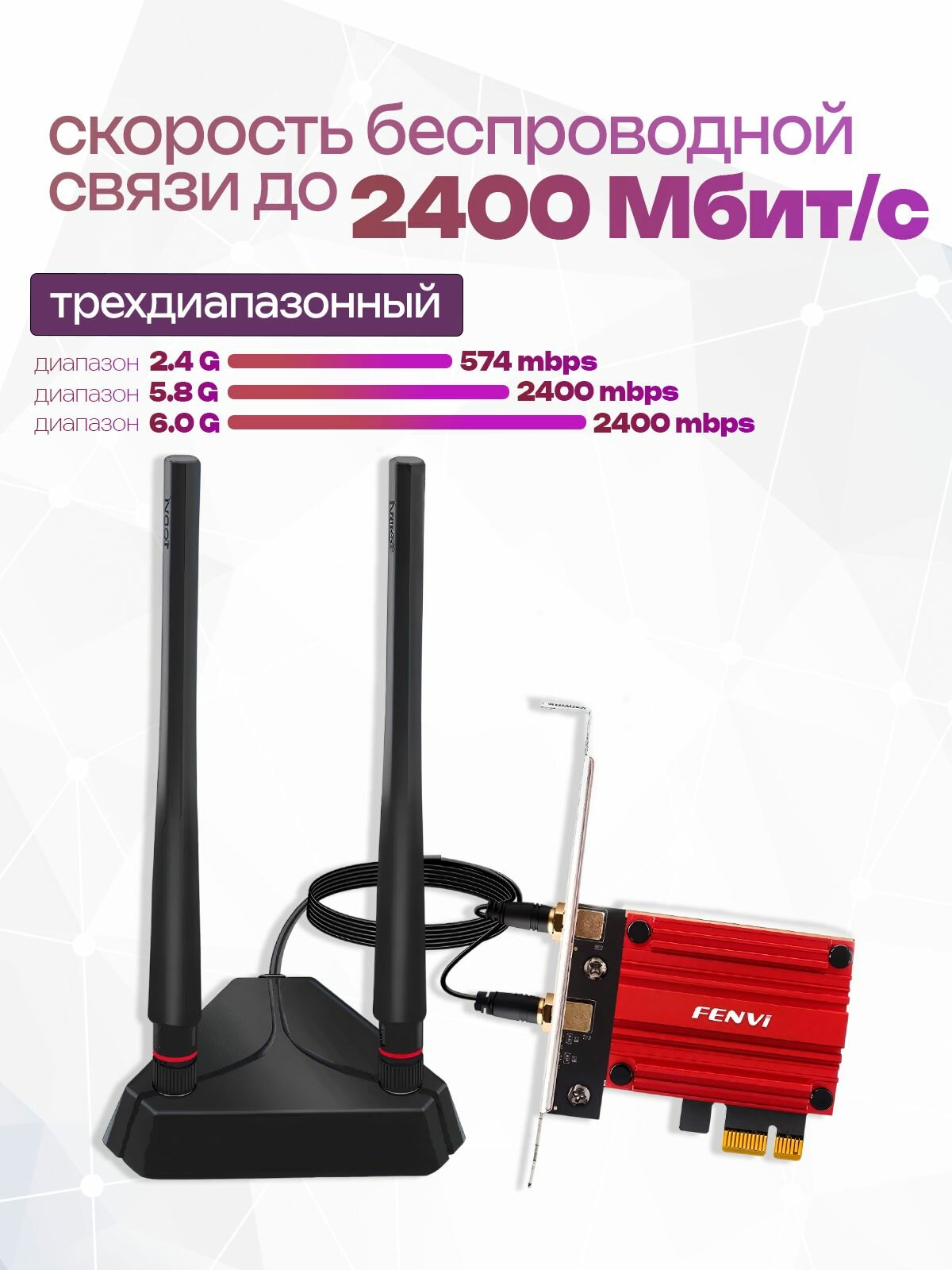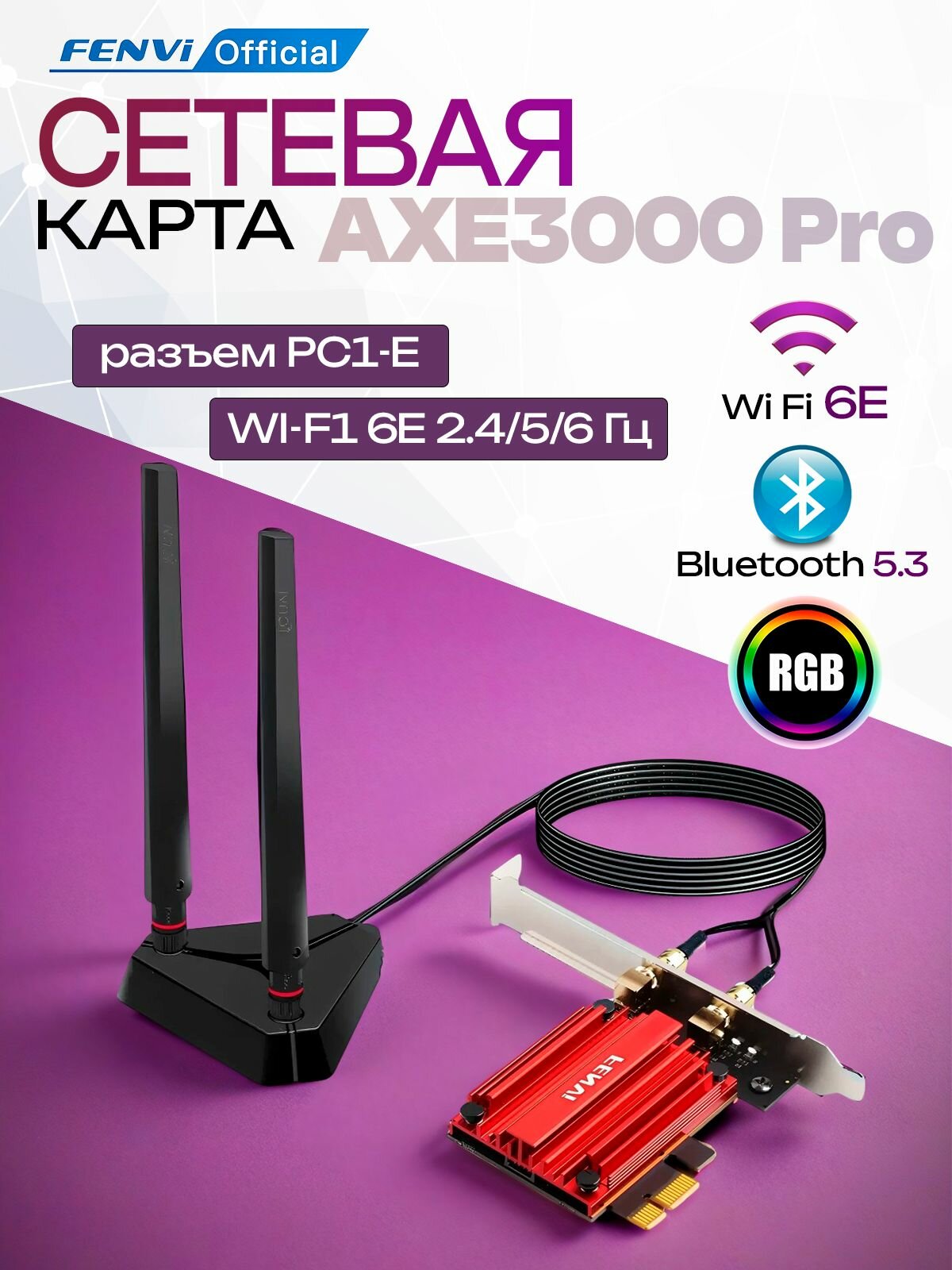 Сетевая карта Fenvi FV-AXE3000 Pro Wi-Fi 6, 2.4ГГц/ 5ГГц/ 6 ГГц, Wi-Fi 802.11AX/AC PCI Express, адаптер Bluetooth 5.3: сравнение цен, характеристики, фото, актуальное наличие и цены.
