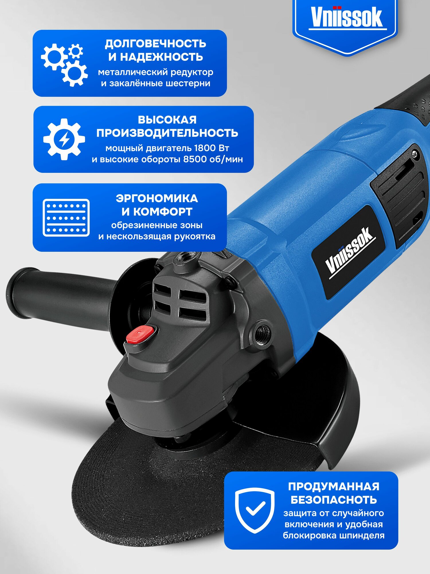 Болгарка электрическая сетевая VNIISSOK VGS-1800 180 мм – это надежный помощник, который объединяет в себе мощность, удобство и безопасность. Этот электроинструмент создан для тех, кто ценит качество и хочет быстро и эффективно справляться с задачами по металлу, камню, бетону и дереву. Благодаря двигателю на 1800 Вт угловая шлифмашина легко справляется с обработкой твердых материалов, поддерживая стабильные обороты и высокую производительность даже при длительной работе. Компактный размер и малый вес делают управление инструментом легким и удобным, а эргономичный корпус позволяет держать машинку уверенно и без лишнего напряжения. Дополнительная рукоятка, которую можно установить под правую или левую руку, обеспечивает максимальный контроль при шлифовке и резке. Металлический редуктор эффективно отводит тепло, увеличивая срок службы электроинструмента, а пылезащищенный выключатель защищает углошлифовальную машину от воздействия мелких частиц и продлевает ее надежность. Особое внимание стоит уделить системе безопасности: прочный защитный кожух оберегает пользователя от искр и пыли, а функция блокировки шпинделя позволяет без усилий менять диски, экономя время и делая процесс работы более удобным. Такая угловая шлифовальная машина станет универсальным решением как для домашних мастеров, так и для тех, кто использует строительные инструменты в профессиональной сфере. Используя эту УШМ 180мм с работой от сети, вы сможете легко резать металлические профили, трубы и арматуру, очищать поверхности, полировать детали автомобиля или распиливать кирпич и бетон. Это электро ушм одинаково хорошо проявляет себя в гараже, на даче и в стройке, обеспечивая высокое качество обработки. Купить шлифмашинку VNIISSOK VGS-1800 стоит каждому, кто ищет универсальный электроинструмент с отличным балансом мощности и удобства. Она станет надежным спутником в любых работах, связанных с резкой и шлифовкой, и всегда поможет добиться аккуратного результата.