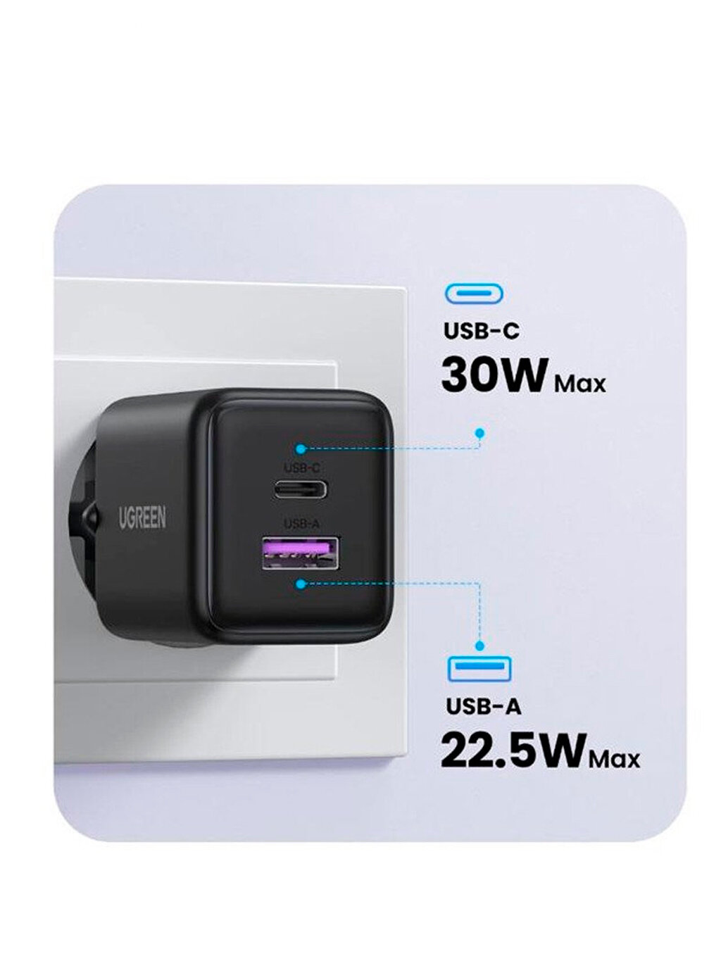 Купить Сетевая зарядка UGREEN X516 (65014) 30W 2-порта USB-C — USB-A GaN черная с доставкой по всей России.