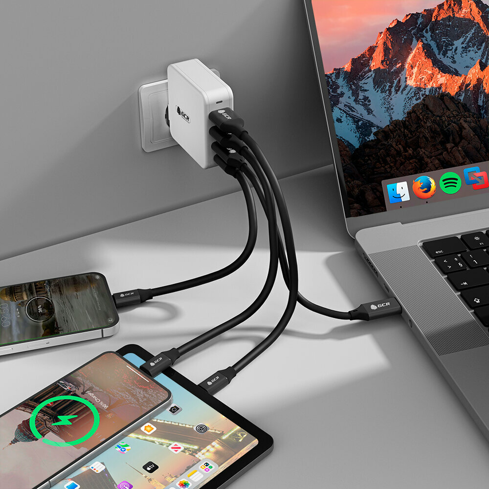 Купить Сетевое зарядное устройство 100W GaN Tech Quick Charger 2 TypeA + 2 TypeC PD 3.0 для MacBook iPhone Samsung Xiaomi Huawei (GCR-PAW01), белый 2 USB, м с доставкой по всей России.