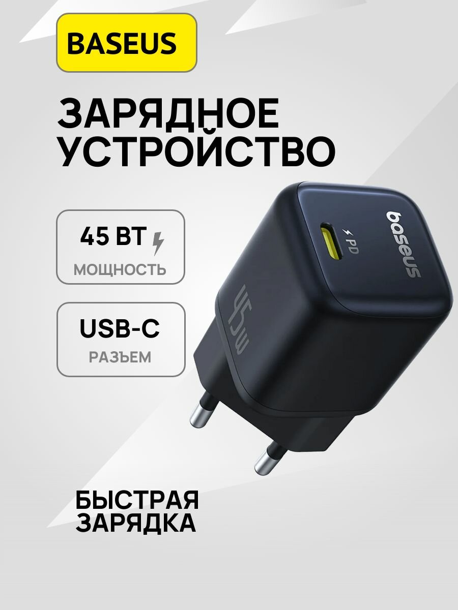 Сетевое зарядное устройство Baseus PicoGo USB-C 45W (P10176800123-00) черный: сравнение цен, характеристики, фото, актуальное наличие и цены.