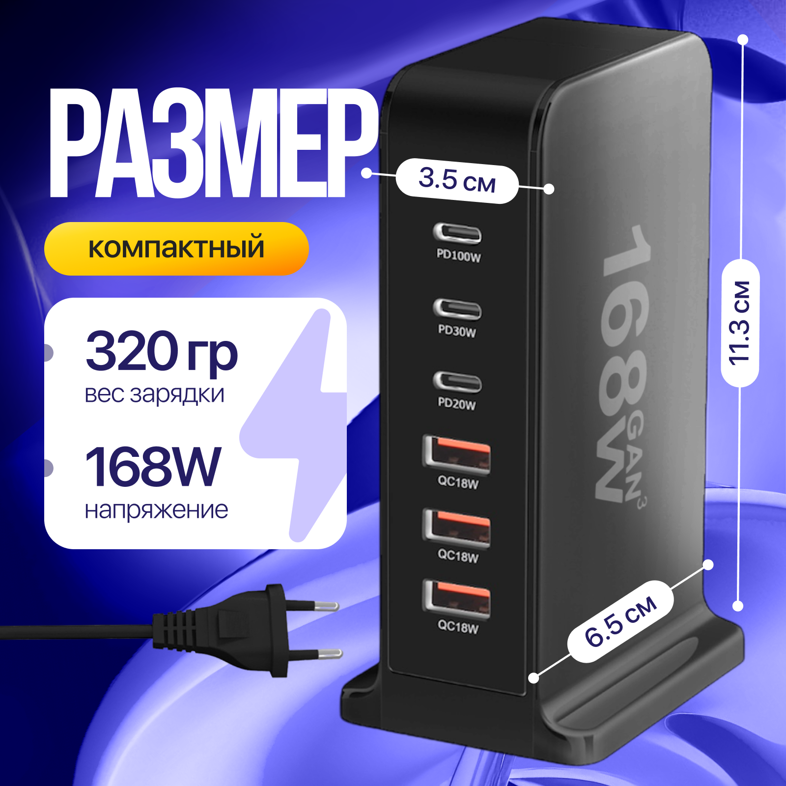 | Подробная комплектация | Сетевая зарядка для телефона и ноутбука 168 Вт, кабель для заряки |