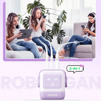 Сетевое зарядное устройство Ugreen CD361 65W Nexode Robot 2xUSB-C, 1xUSB-A GaN, фиолетовый (35291)