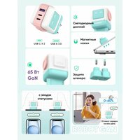 Купить Сетевое зарядное устройство UGREEN CD361 Nexode ROBOT GaN 65W USB-A+2*USB-C розово-синий с доставкой по всей России.