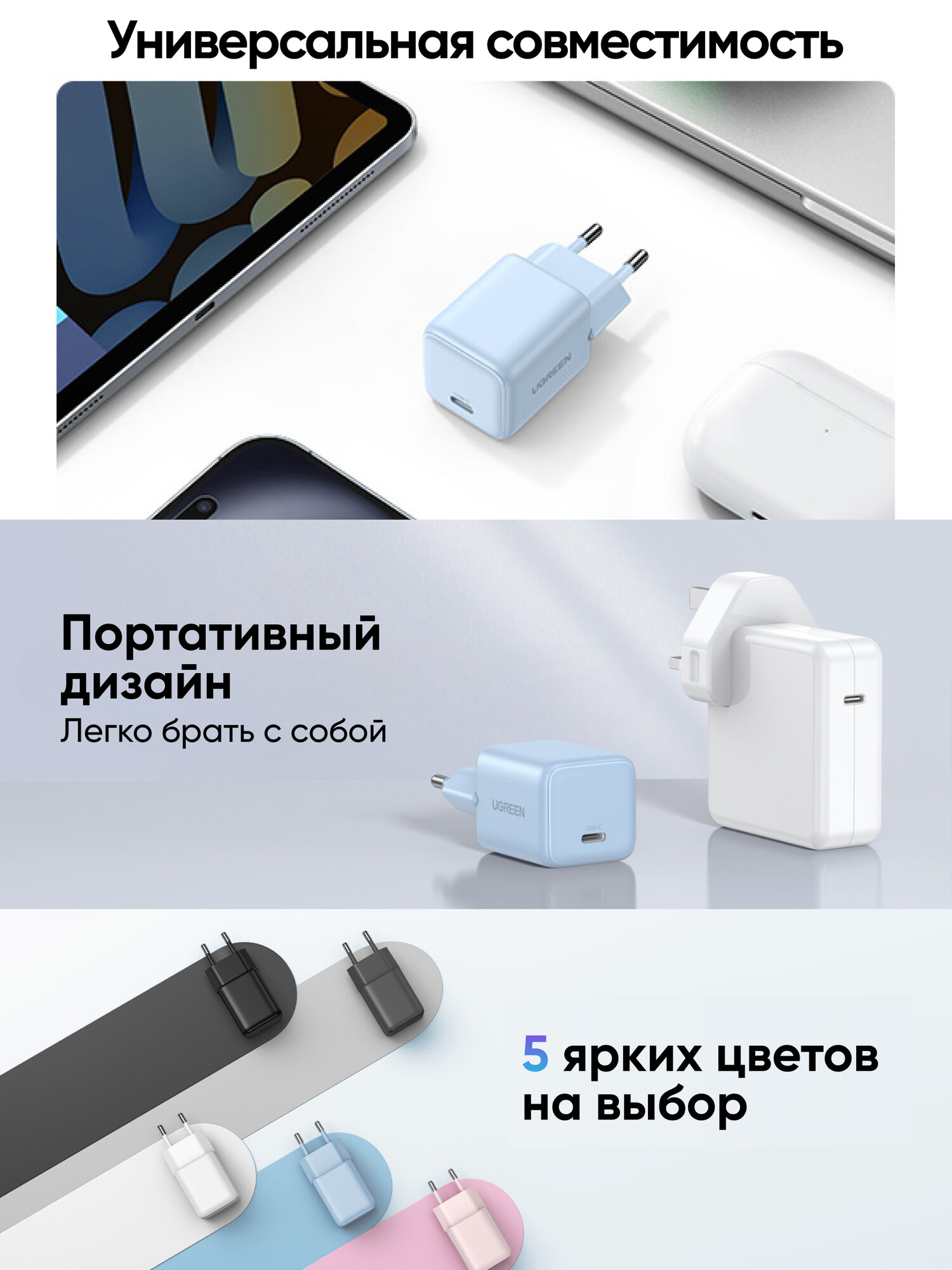 Сетевое зарядное устройство UGREEN X513 (65010) 30W USB-C GaN Fast Charger EU. Цвет: синий: сравнение цен, характеристики, фото, актуальное наличие и цены.
