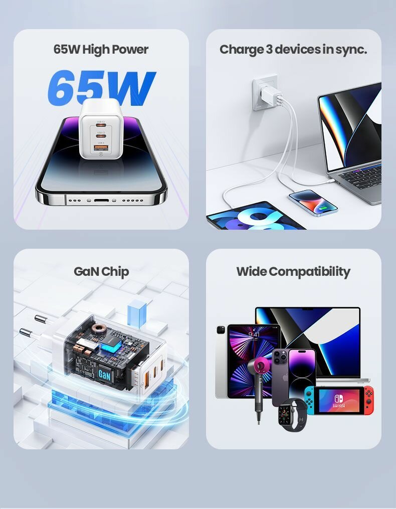 • Название: 65W ACC 3 Ports GaN Fast Charger