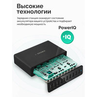 Этот сетевой адаптер usb использует технологии PowerIQ и VoltageBoost. Умный чип автоматически определяет подключённое устройство, настраивает ампераж и гарантирует быструю зарядку без нагрева. Каждый порт выдаёт до 2,4А (до 12Вт), а ток достигает 12А — этого достаточно даже для одновременной подзарядки мощных девайсов. Универсальный адаптер поддерживает зарядку type c, USB Lightning и другие популярные форматы подключения.