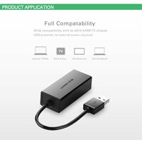 Сетевой адаптер Ugreen USB 2.0 — LAN RJ45, 10/100 Мбит/с, цвет черный (20254)