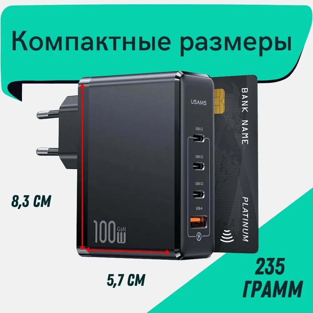 • Название: T50 100W 4 Ports GaN Fast 1A+3C Charger (EU)