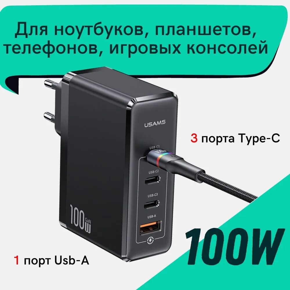 Универсальный сетевой адаптер USAMS T50 100W 4 Ports GaN Fast Charger (US-CC163)