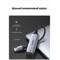 Сетевой адаптер USB-A 3.0-LAN RJ45 Ugreen, 1Гбит/с, серый (50922)