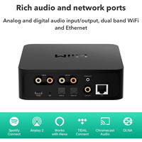 WiiM Pro Plus – дает возможность слушать музыку высокого качества с внешних источников, со смартфона, NAS-сервера и таких потоковых сервисов, как Roon, Qobuz, Tidal, Napster, Deezer, Spotify, TuneIn с помощью специального приложения или с помощью AirPlay2, Chromecast Audio, Bluetooth, LinkPlay и пр.