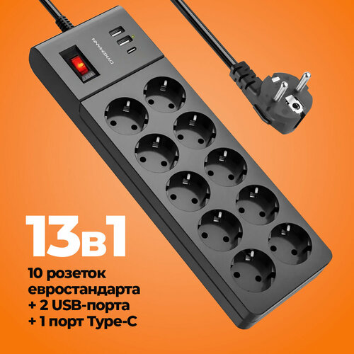 Сетевой фильтр 13в1 с заземлением, удлинитель с 10 розетками евростандарта, 2 USB-порта, USB Type-C, разветвитель, длина кабеля 2 м, Dykemann Feuerfunke KM-18: сравнение цен, характеристики, фото, актуальное наличие и цены.