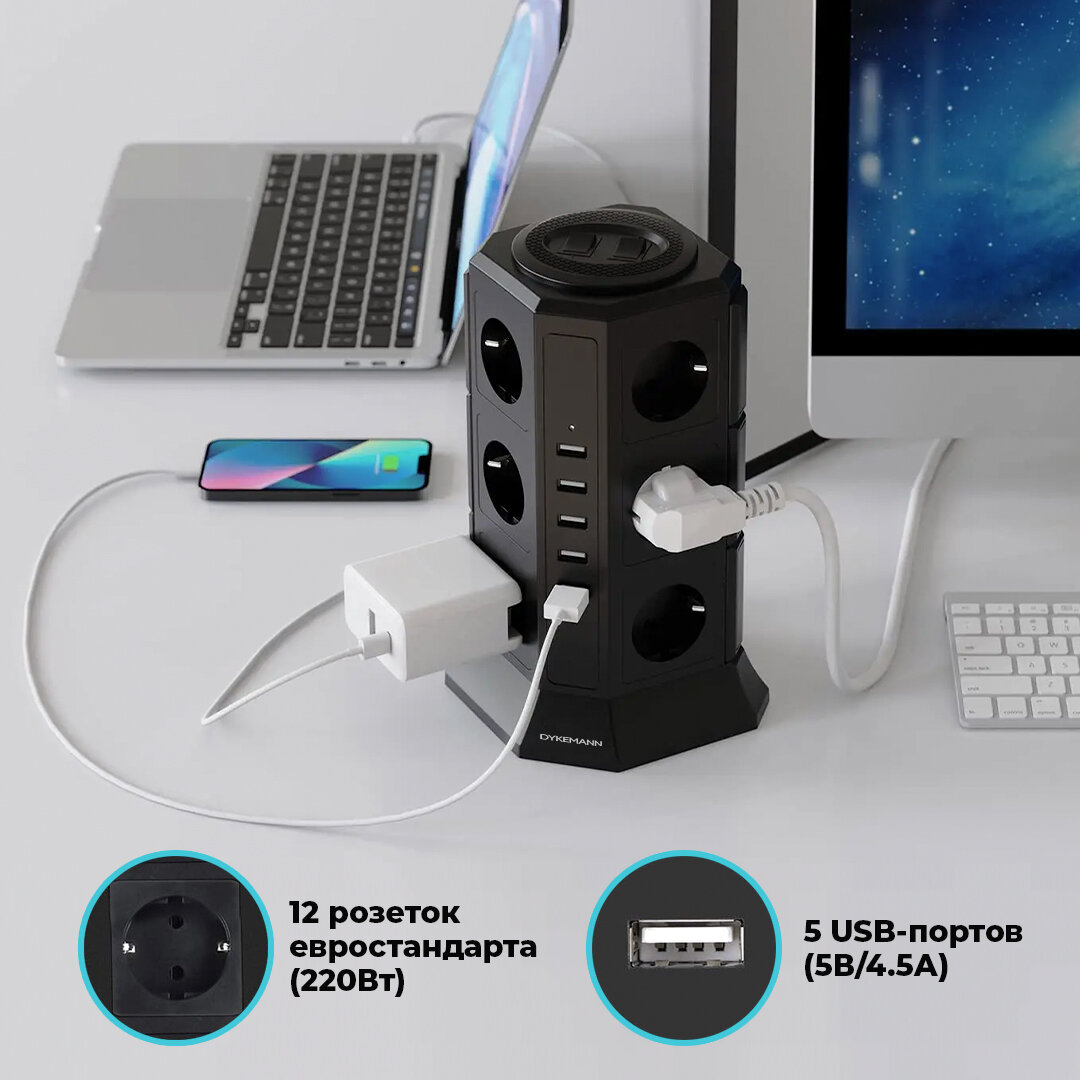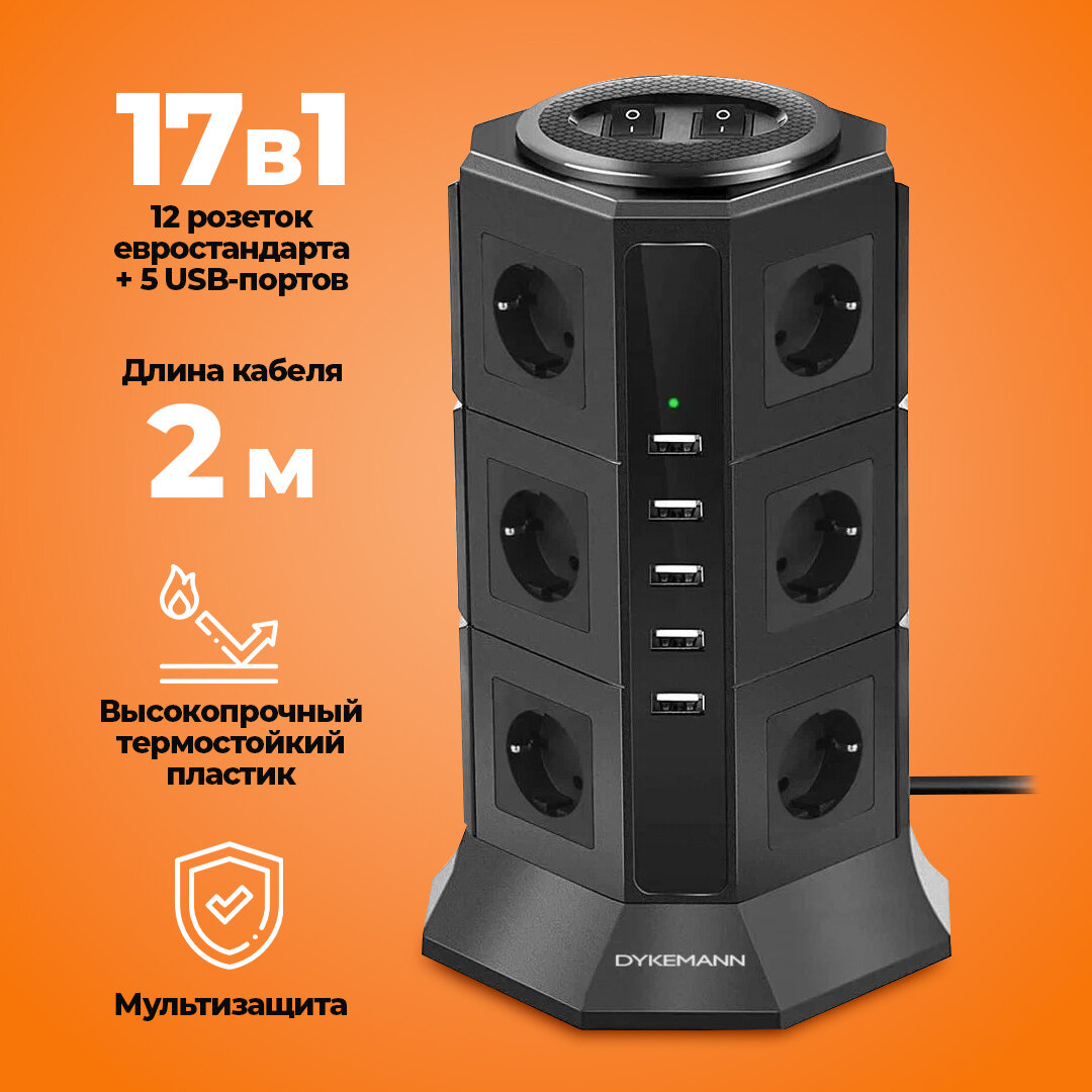 Сетевой фильтр 17в1 с заземлением, удлинитель с 12 розетками евростандарта, 5 USB-портов, разветвитель, длина кабеля 2 м. Dykemann Feuerfunke KM-36: сравнение цен, характеристики, фото, актуальное наличие и цены.