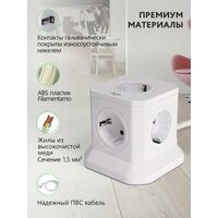 - Пять розеток стандарта Schuko (тип F) с заземляющими контактами и защитными шторками. Универсальная совместимость с российскими и европейскими вилками гарантирует безопасную эксплуатацию, включая использование в детских помещениях.