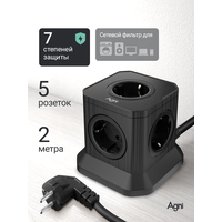 Сетевой фильтр, AGNI, 5 розеток, с предохранителем и заземлением, кабель 2м, черный