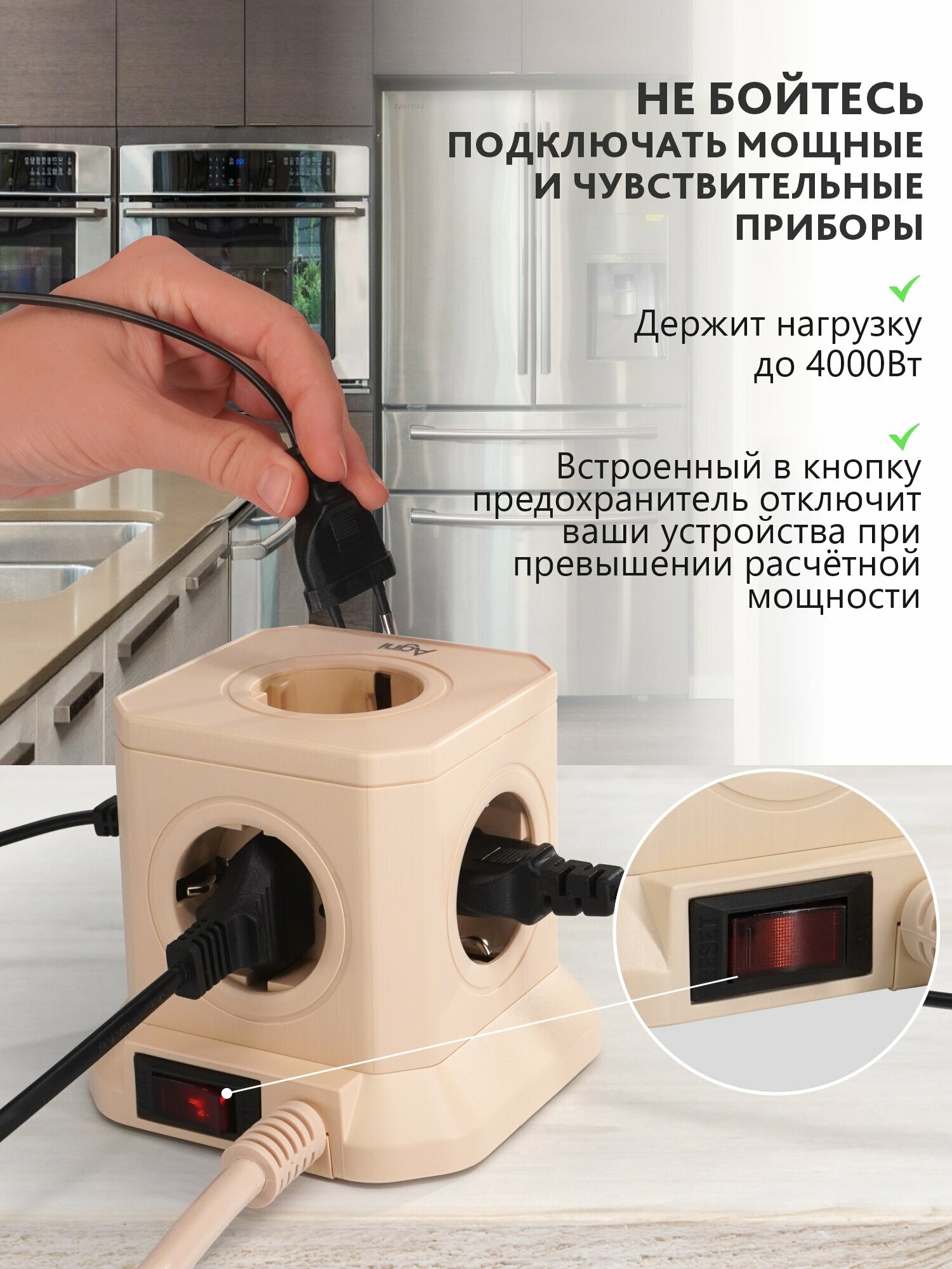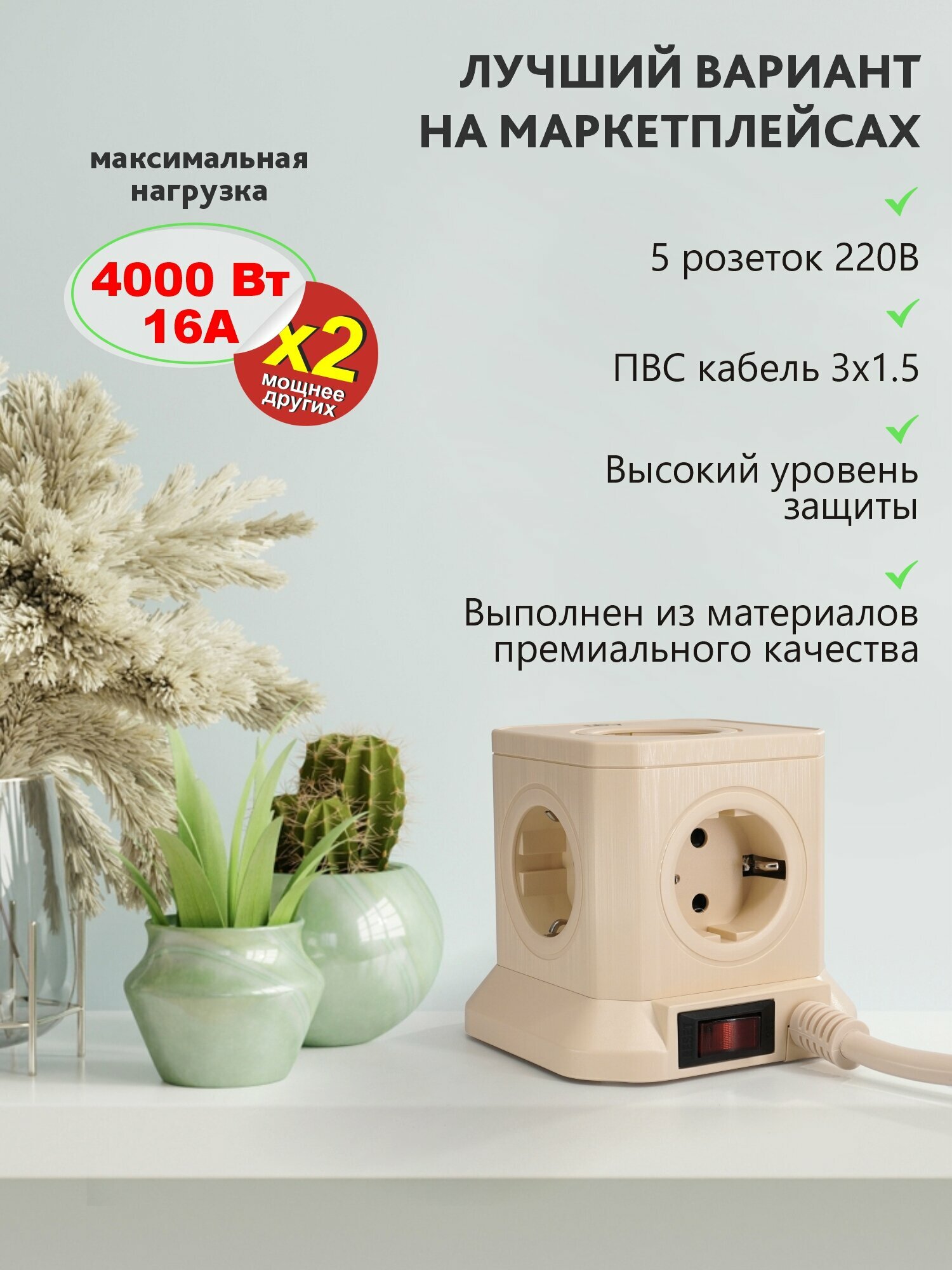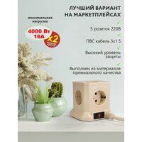 - Пять розеток стандарта Schuko (тип F) с заземляющими контактами и защитными шторками. Универсальная совместимость с российскими и европейскими вилками гарантирует безопасную эксплуатацию, включая использование в детских помещениях.