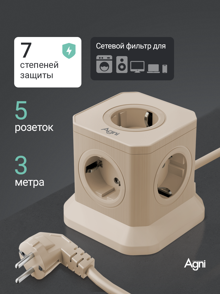 Сетевой фильтр AGNI TP-VE4U5E представляет собой современное и технологичное устройство, предназначенное для безопасного и эффективного подключения бытовой и цифровой техники. Конструкция обеспечивает стабильное электропитание и надежную защиту оборудования от основных электросетевых рисков, сохраняя компактность и эргономику использования.
