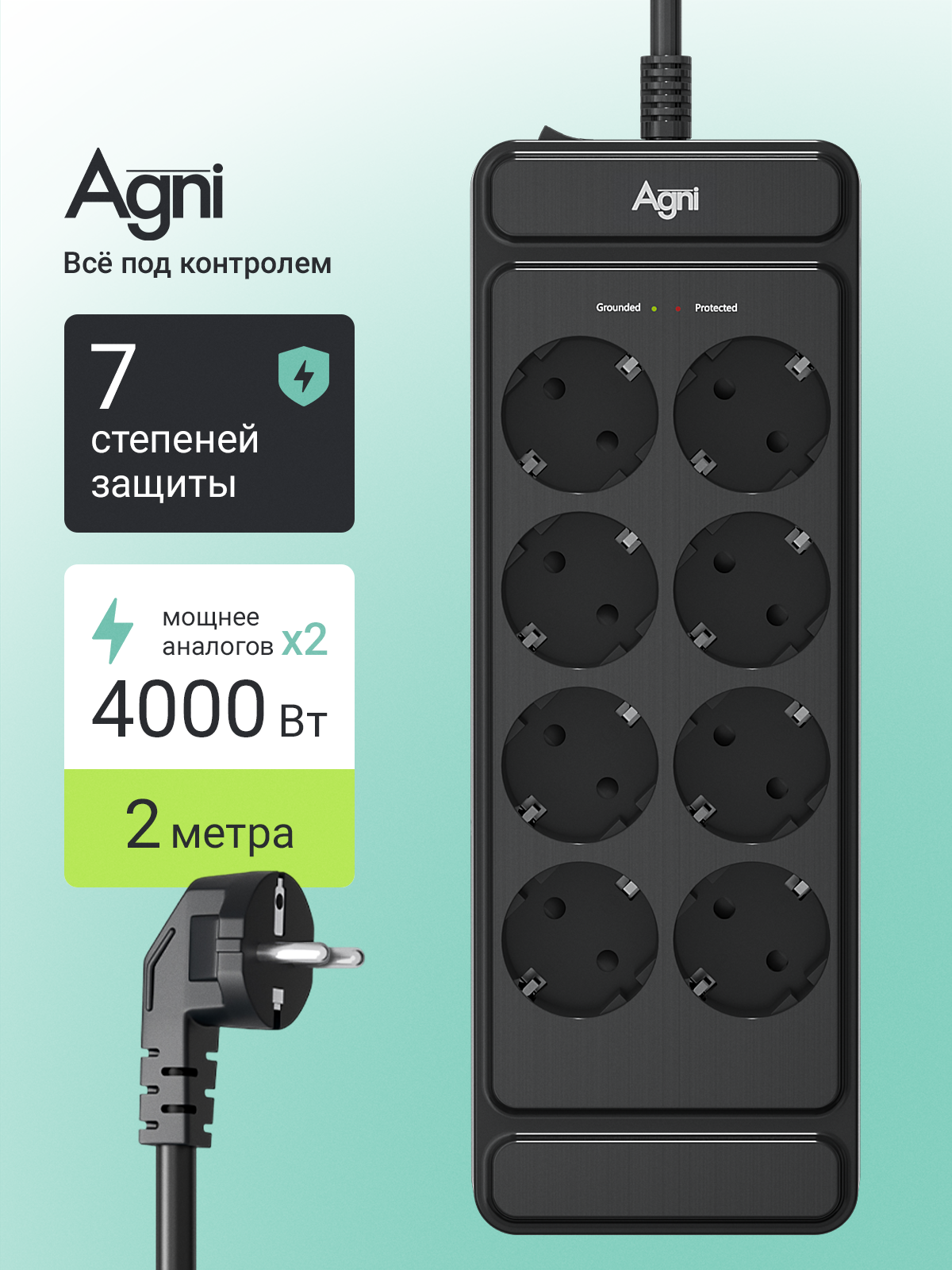 Сетевой фильтр, AGNI, 8 розеток, с предохранителем и заземлением, удлинитель сетевой 2м: сравнение цен, характеристики, фото, актуальное наличие и цены.