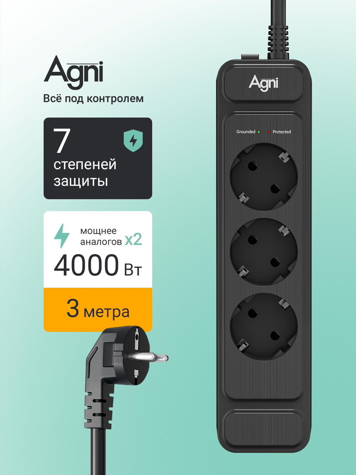 Сетевой фильтр, AGNI, с заземлением, 3 розетки с выключателем, удлинитель сетевой 3м: сравнение цен, характеристики, фото, актуальное наличие и цены.