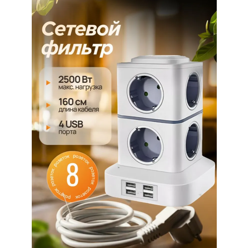 Купить Сетевой фильтр башня на 8 розеток 4 usb кабель 1.6 м с доставкой по всей России. Сетевой фильтр башня на 8 розеток 4 usb кабель 1.6 м: сравнение цен, характеристики, фото, актуальное наличие и цены.