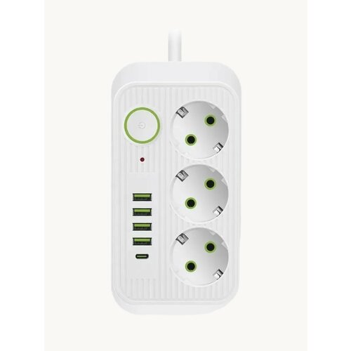 3 евро-розетки, 4 USB портами+1 Type-C , с защитой для вашей техники от скачков напряжения сети и функцией зарядки для ваших гаджетов.