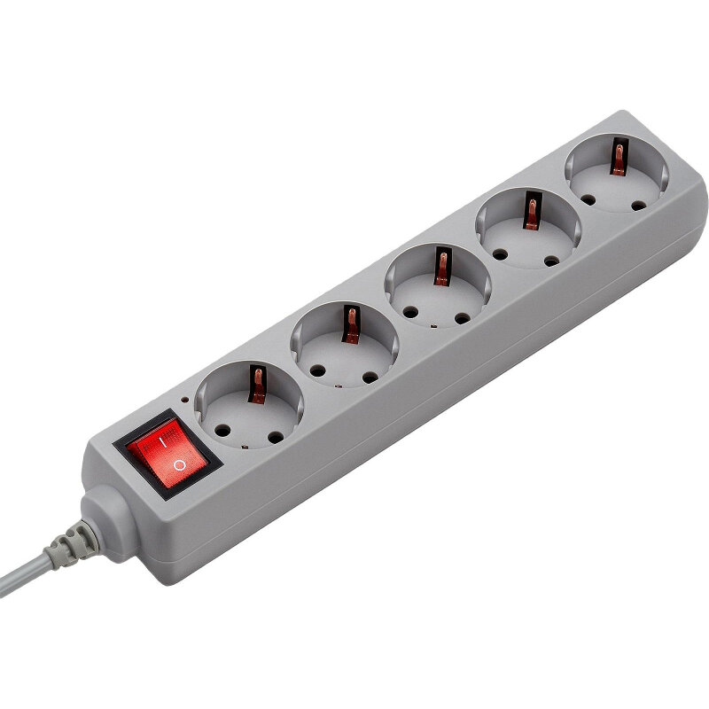 Сетевой фильтр Buro 500SL-5-G 5м (5 розеток) серый (пакет ПЭ)