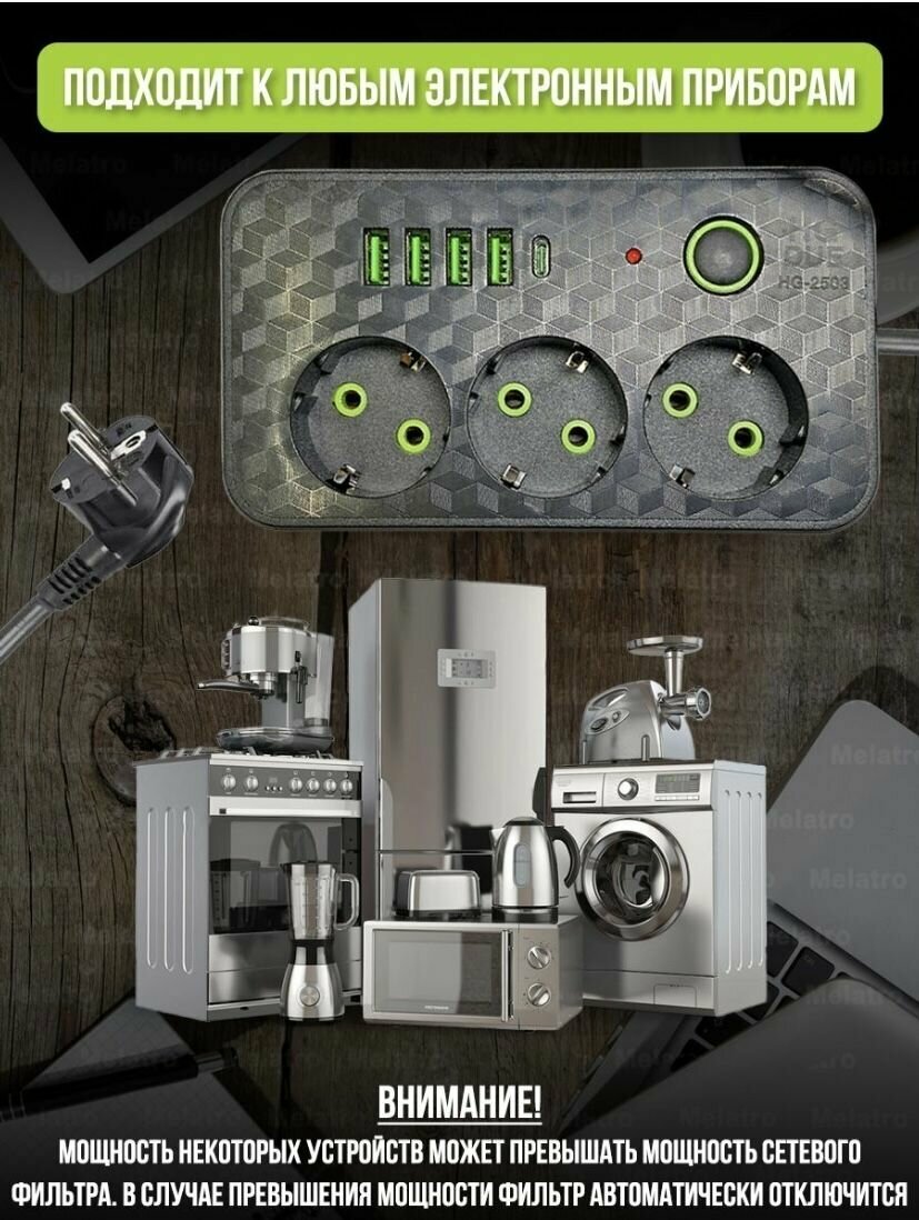 Сетевой фильтр, бытовой удлинитель с Type-C и USB, длина 3 метра: сравнение цен, характеристики, фото, актуальное наличие и цены.