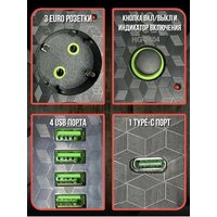 Сетевой фильтр, бытовой удлинитель с Type-C и USB, длина 3 метра