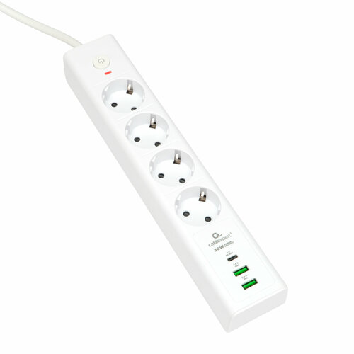 Технические характеристики: 4 заземлённые розетки (евростандарт) 3 USB выхода: USB-A: 5В 2.4A Max 2.4 А на порт Кнопка питания отключает все силовые и USB выходы USB-C: 30Вт (5В 3A, 9В 3A, 12В 2.5A, 20В 1.5A) Автоматический предохранитель на 16 А Номинальное напряжение – 100-250 В Суммарная номинальная мощность нагрузки – 4 кВт Номинальный ток нагрузки – 16 А Ток помехи, выдерживаемый ограничителем – не менее 2.5 кА Максимальная поглощаемая энергия – 90 Дж Отверстия для крепления на стену Габаритные размеры – 110 x 320 x 50 мм Общая длина шнура – 2 м Цвет – белый Провод: ПВС 3 х 1,5 мм2