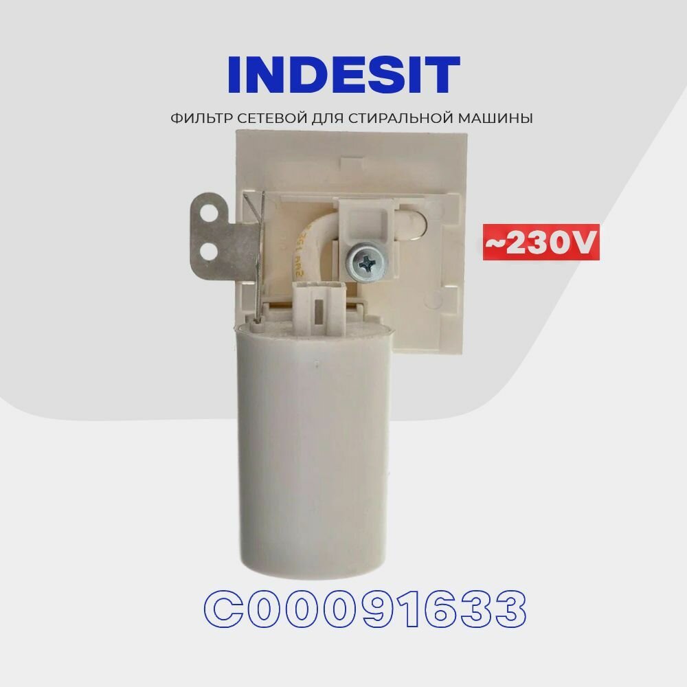 Сетевой фильтр для стиральной машины Indesit C00378443 ( C00091633 ) на 2 контакта. Изделие изготовлено по стандарту ГОСТ IEC 60384-14-2015. Фильтр сети устанавливается в моделях стиральных машин Индезит серии: BW, NW, VM, MF, MV, RS, WM и др.