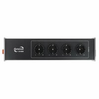 Dynavox X1000 - самая младшая модель успешной серии фильтров-дистрибьютеров питания Dynavox. Модель X1000 имеет 4 розетки с функцией фильтрации, что вполне достаточно для подключения системы из нескольких Hi-Fi компонентов таких как усилитель, тюнер, CD-плеер, стример или проигрывателей винила. Dynavox X1000 собран в прочном металлическом корпусе, имеет автоматический выключатель 10 A и индикатор фазы (загорается, если положение фазы в линии питания неверное). Максимальная мощность потребителей 2300 Вт. Максимальный ток 10 А.