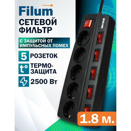 Купить Сетевой фильтр Filum FL-SPL5-1.8M-BL, 2500 Вт, 5 розеток, шнур 1.8 м, черный с доставкой по всей России. Сетевой фильтр Filum FL-SPL5-1.8M-BL, 2500 Вт, 5 розеток, шнур 1.8 м, черный: сравнение цен, характеристики, фото, актуальное наличие и цены.