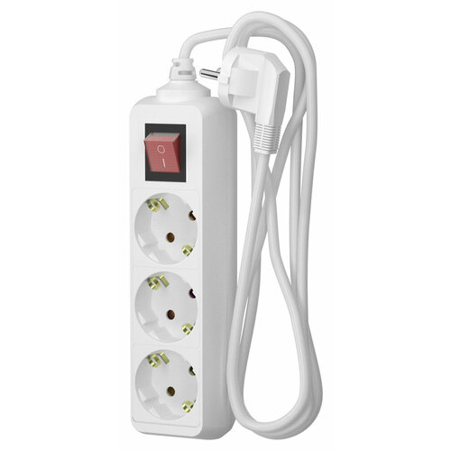 Удлинитель оборудован выключателем на корпусе, который позволяет обесточить все подключенные электроприборы одним нажатием. Это обеспечивает безопасность и удобство использования.