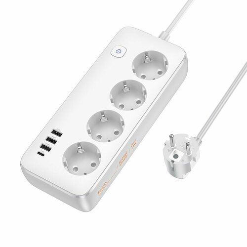 Сетевой фильтр на 4 розетки+3 USB+1 PD, 3 м, AC21, Sunlight, HOCO, белый