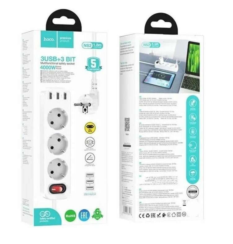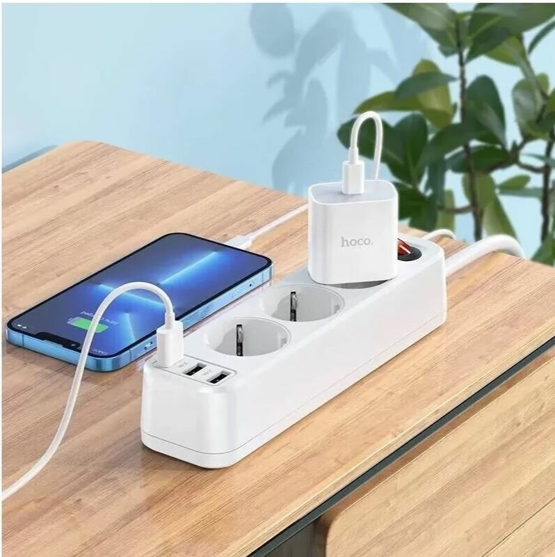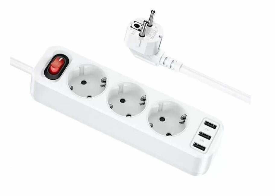 Сетевой фильтр HOCO NS2 3-USB, 1.8 метра, белый: сравнение цен, характеристики, фото, актуальное наличие и цены.
