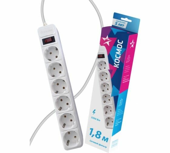 Купить Сетевой фильтр космос 1,8м 6 гнезд, пвс 3×1мм2, белый FKsm1.8m-6g(W)16A с доставкой по всей России. Сетевой фильтр космос 1,8м 6 гнезд, пвс 3×1мм2, белый FKsm1.8m-6g(W)16A: сравнение цен, характеристики, фото, актуальное наличие и цены.
