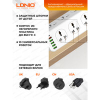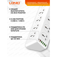 Сетевой фильтр LDNIO SC10610 - 10 универсальных розеток + USB зарядка 6 портов QC3.0 и PD - белый LD_D0426