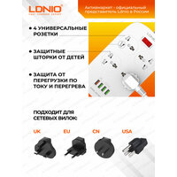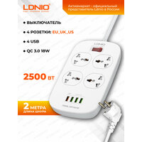 Сетевой фильтр LDNIO SC4407Q/ 2м/ 4 роз. EU_UK_US/ 2500W/ 4 USB+QC 3.0/ Выкл. на роз./ белый