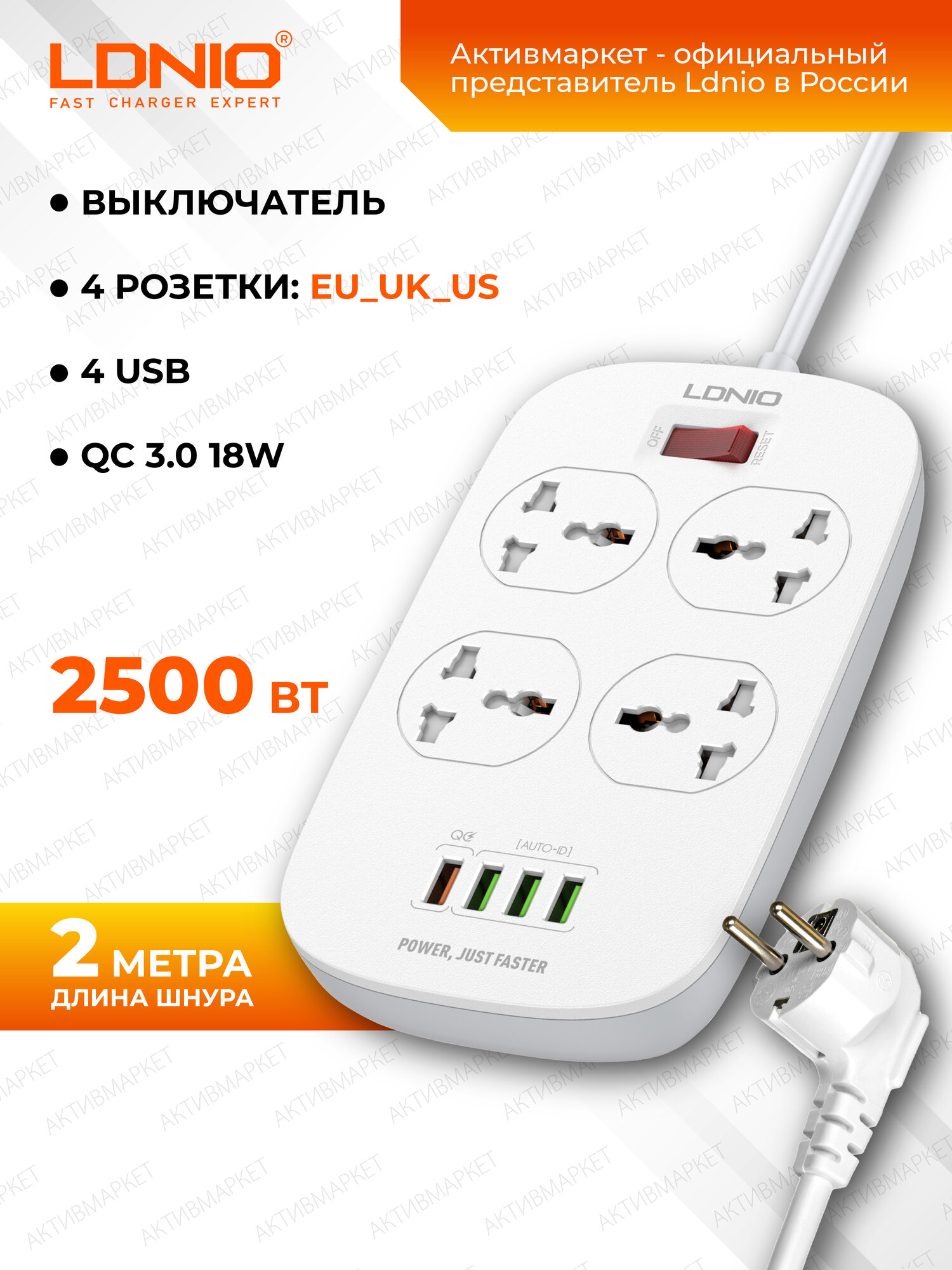 Сетевой фильтр LDNIO SC4407Q/ 2м/ 4 роз. EU_UK_US/ 2500W/ 4 USB+QC 3.0/ Выкл. на роз./ белый: сравнение цен, характеристики, фото, актуальное наличие и цены.