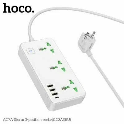 Сетевой фильтр на 3 розетки, 3 USB, 1 PD, 1.5м, AC7A, HOCO, белый: сравнение цен, характеристики, фото, актуальное наличие и цены.