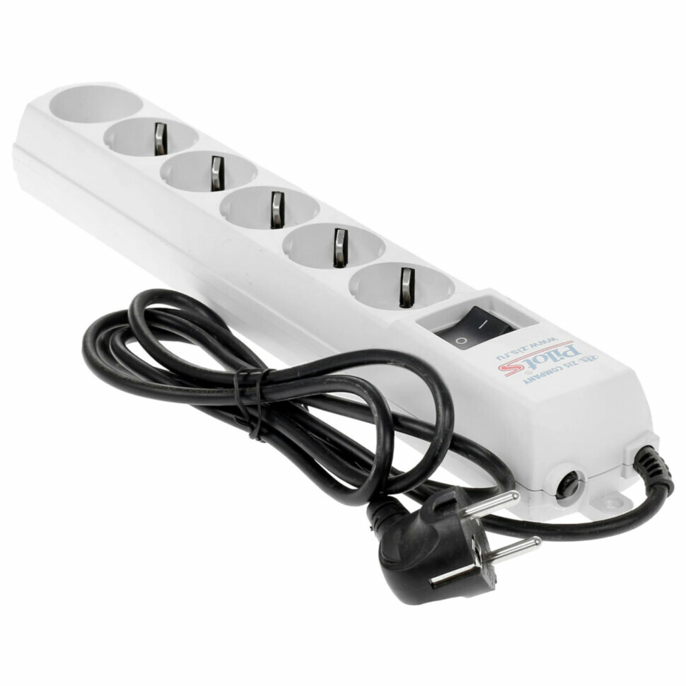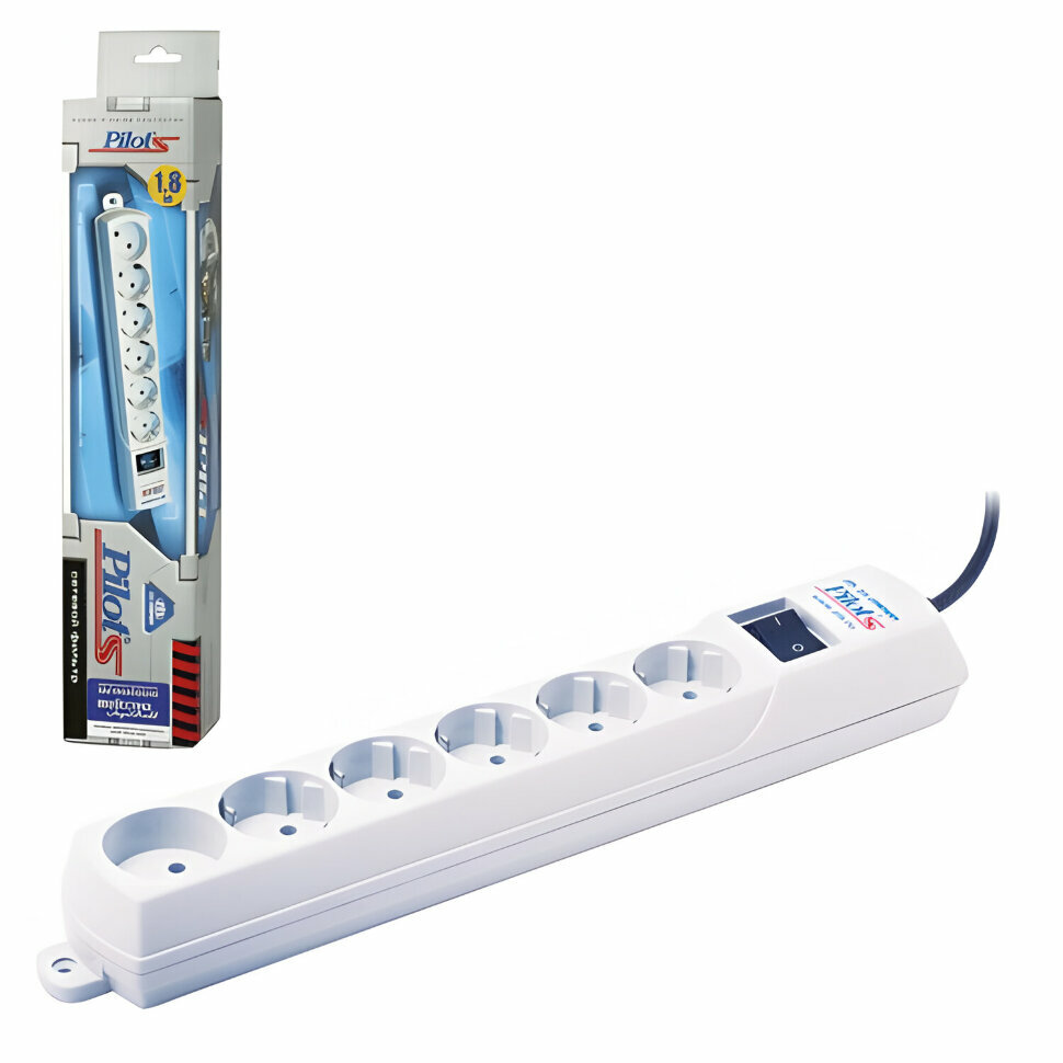 Сетевой фильтр Pilot S длина кабеля 1.8 м, 6 розеток, цвет белый, упаковка коробка