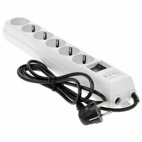 - Шесть выходных розеток, пять из которых получили тип EURO, позволят с безопасностью подключить любую домашнюю бытовую технику. Нужное питания для работы составляет 220 В. Максимальная нагрузка равна 2200 Вт, что является отличительной особенностью от других моделей.
