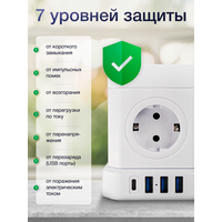 Купить Сетевой фильтр AGNI, 4 розетки, 3 USB порта, Type-C порт, до 4000Вт, с заземлением с доставкой по всей России.