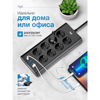 Купить Сетевой фильтр с предохранителем, AGNI, 8 розеток / 3 USB / 1 TYPE-C, удлинитель 3 м, защитные шторки, негорючий пластик с доставкой по всей России.