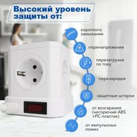 USB порт, выключатель на корпусе, световая индикация, шторки на розетке