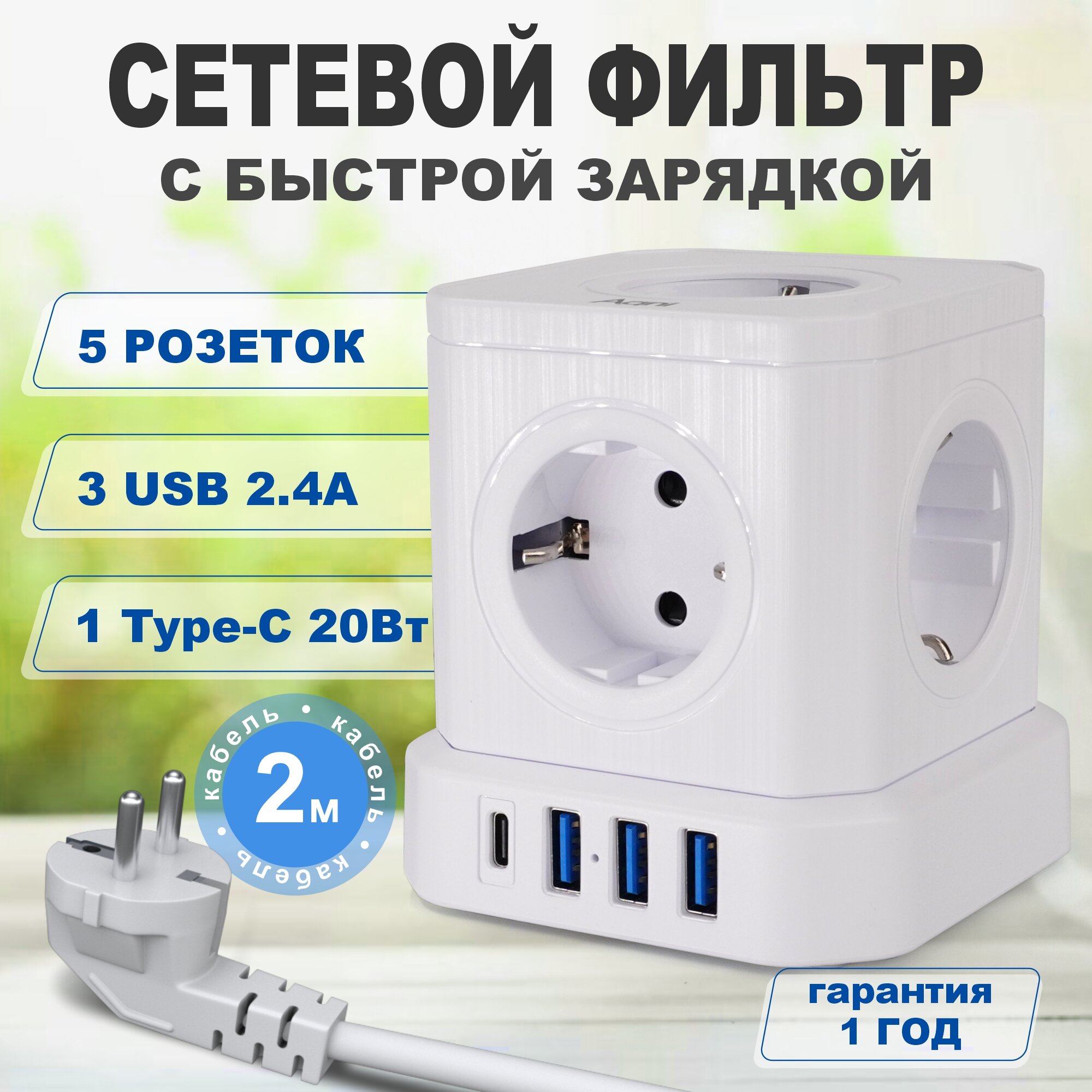Сетевой фильтр с заземлением AGNI 5 розеток 220V, 3 USB 2.4A, 1 TYPE-C 20W (быстрая зарядка), 16A / 4000Вт 2м белый: сравнение цен, характеристики, фото, актуальное наличие и цены.