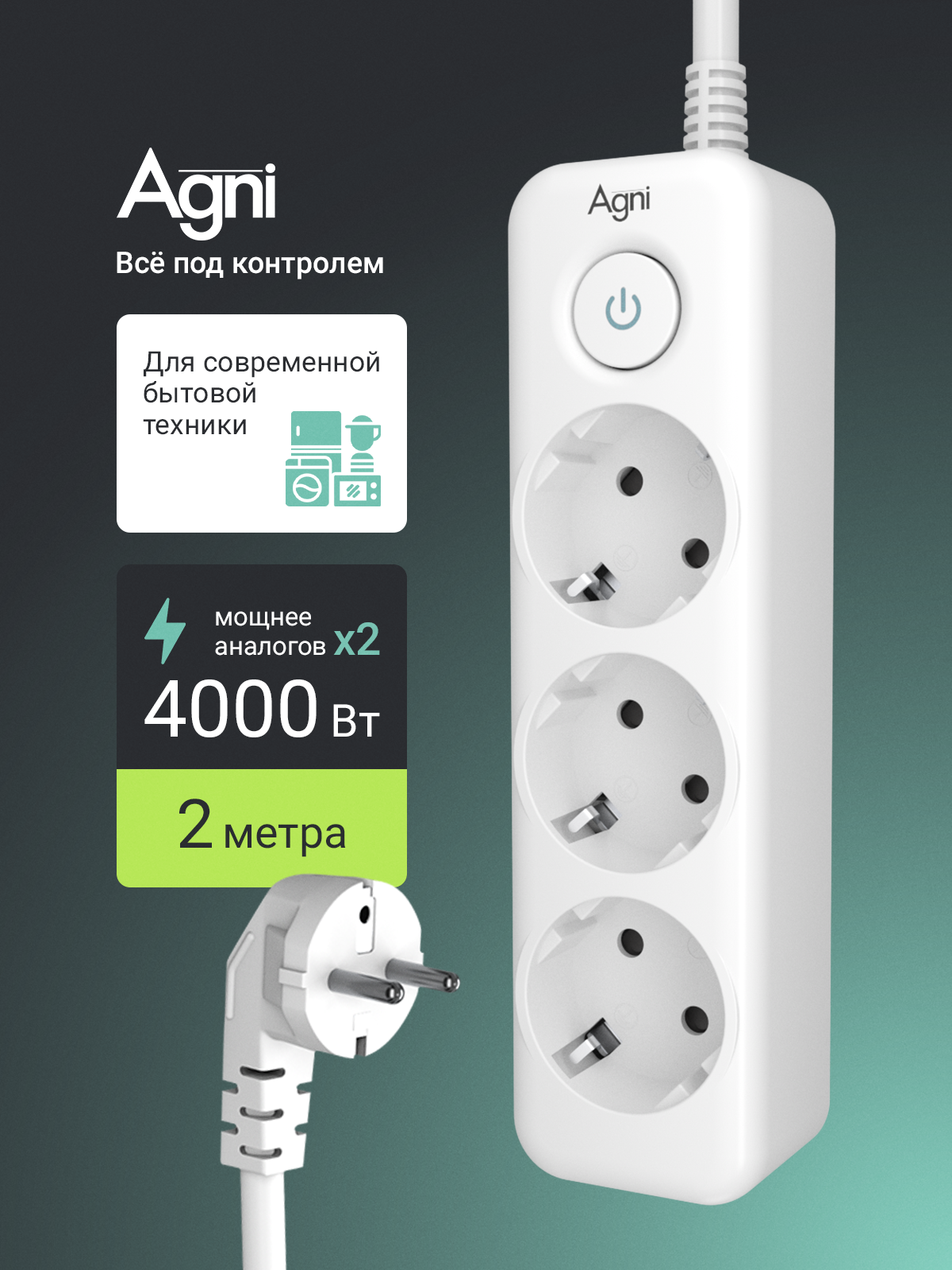 Сетевой фильтр с заземлением на 3 розетки AGNI с выключателем, защитные шторки, 4000 Вт/16 А, удлинитель 2 метра: сравнение цен, характеристики, фото, актуальное наличие и цены.